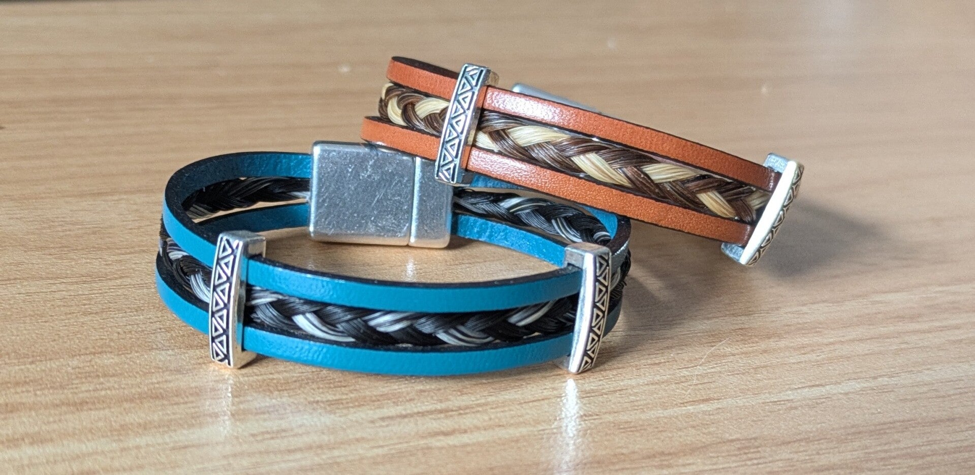 Il est possible de combiner jusqu'à 3 couleurs dans la tresse en crins pour donner plus de relief à votre bijou !